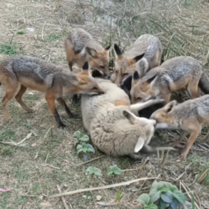 A powerful scene from the wild has been captured in this photo, where several foxes are seen surrounding a sheep lying on the ground. From the image,…