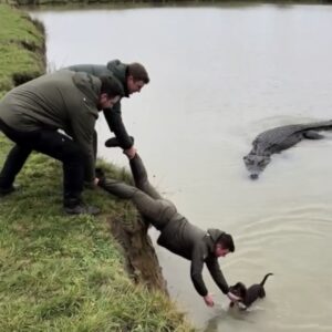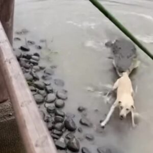 A dramatic moment near a river has captured attention after a small puppy was nearly attacked by a crocodile. The predator was approaching the helpless puppy, ready…
