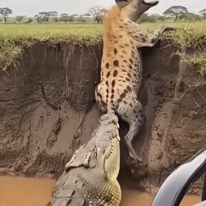 A tense and shocking scene has been captured in the wild, where a hyena came terrifyingly close to death after being attacked by a crocodile at the…