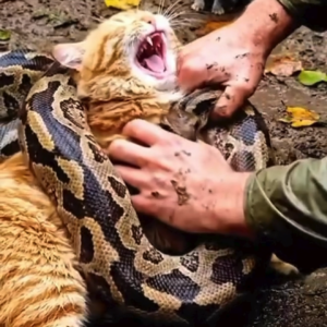 A dramatic incident was witnessed in a natural area where a small cat was seen struggling in a fierce encounter with a snake that had wrapped itself…