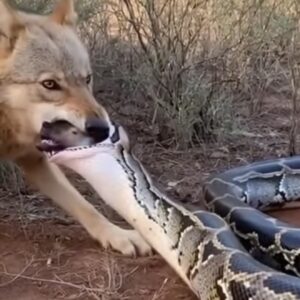 A powerful and emotional moment from the wild has captured attention, showing a wolf bravely confronting a massive snake in what appears to be a desperate attempt…
