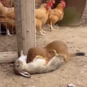 A disturbing moment has been captured in a backyard, where a small predatory animal is seen attacking a rabbit lying on the ground. The footage shows the…