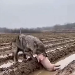 A dramatic moment has been captured on video, showing a farmer rushing to save a small piglet from a wolf attack. The intense footage shows the predator…