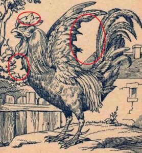 Face 3: An inverted face created by the arrangement of the rooster’s wing and tail.