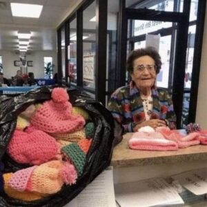 She knits caps for unknowns; I believe one was meant only for me.