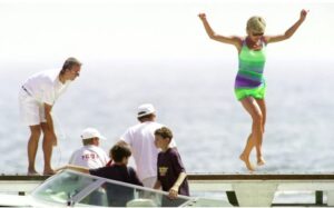 In 1990, Diana, accompanied by her children and her sister’s kids, visited Necker Island in the British Virgin Islands—a retreat owned by Richard Branson. The photograph portrays a carefree Diana, savoring precious moments with loved ones.