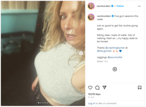 Vorderman captioned the post, “Five gym sessions this week. Just so good to get the routine going again. Eating clean, loads of water, lots of walking, fresh air…..my happy state to be honest.”