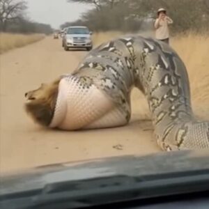 A shocking scene has been reported from a remote wilderness area, where a massive snake is said to have attacked and swallowed a young lion during an…