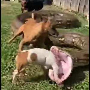 A tense and emotional scene has been captured in a backyard, where several dogs are seen bravely confronting a large alligator in an apparent attempt to save…